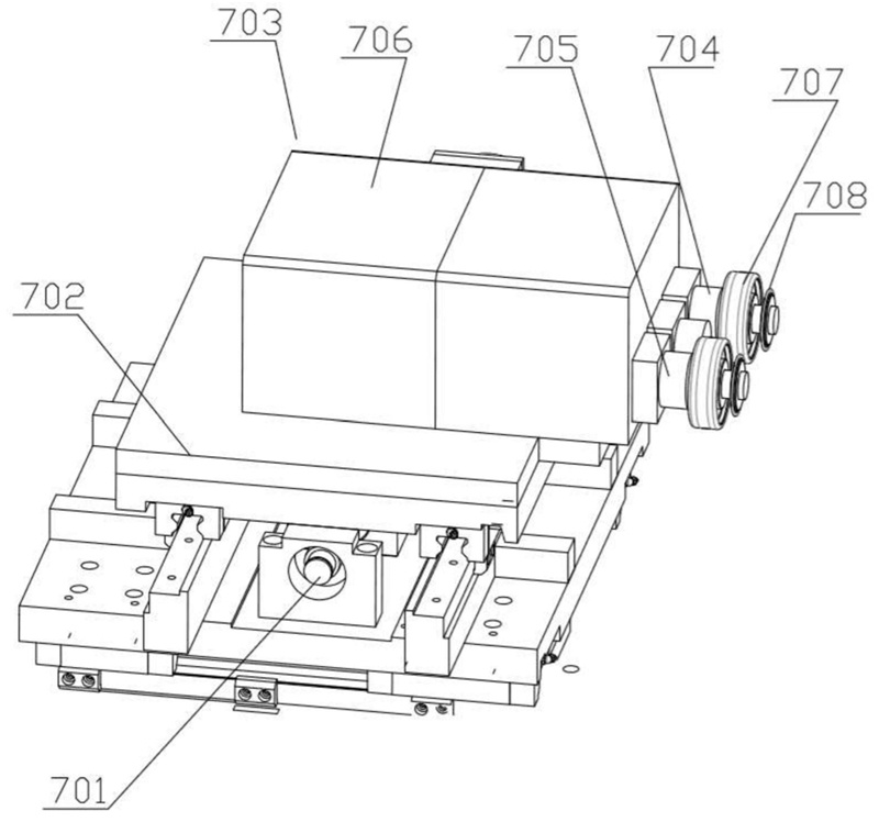 在一些實施方式中,第二移動部包括第二電機、齒輪、齒條、第二線軌、第二滑塊和第二安裝板,第二電機的的輸出端連接齒輪,齒條固定在床身上,齒輪與齒條嚙合,第二線軌與齒條平行設(shè)置,第二滑塊套設(shè)在第二線軌上,第二電機與第二滑塊固定安裝在第一安裝板上,第二電機驅(qū)動第二安裝板在第二線軌上作直線往復(fù)運動。