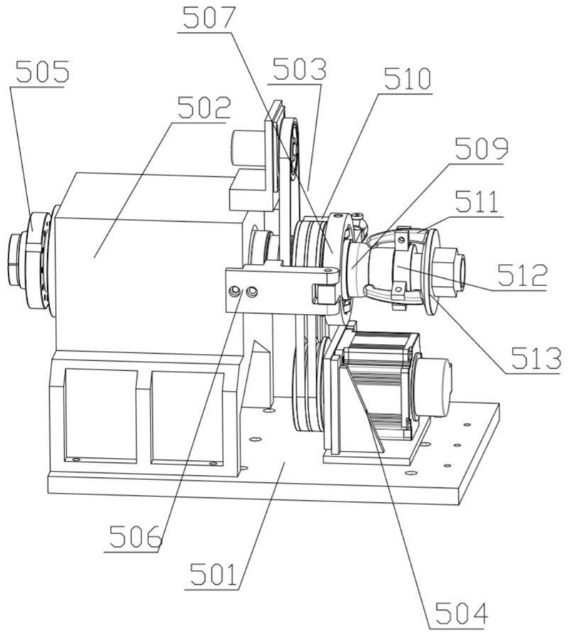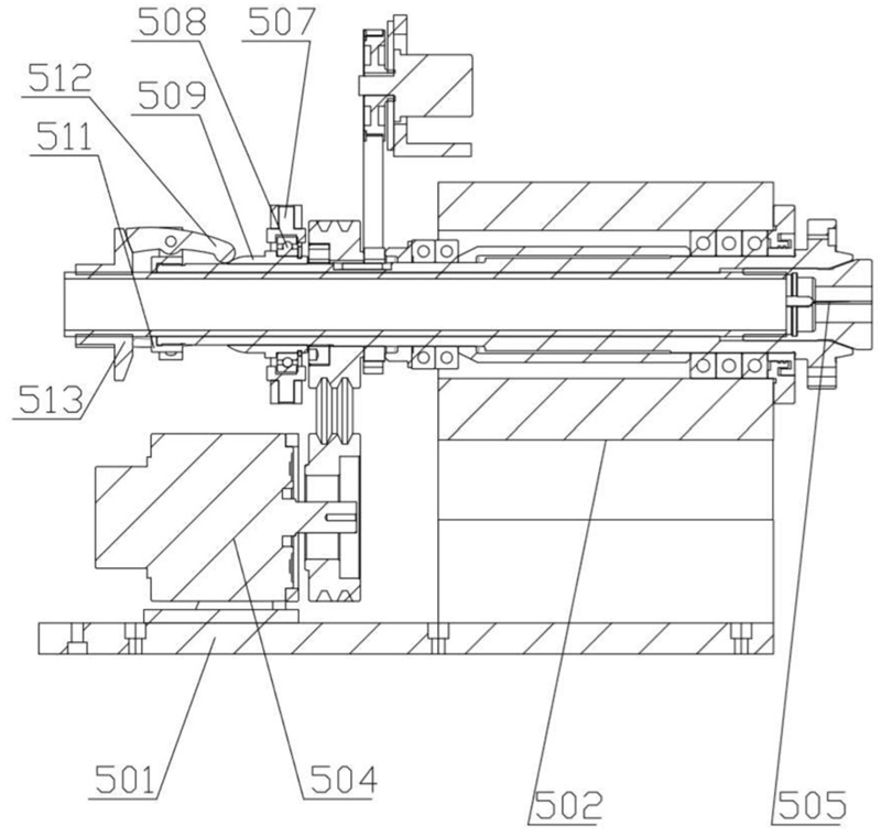 在一些實施方式中,第一夾持部包括第四安裝板、主軸箱、附加夾頭和旋轉(zhuǎn)驅(qū)動件,主軸箱設(shè)置在第四安裝板上,主軸箱遠離卡盤的一側(cè)設(shè)有附加夾頭,旋轉(zhuǎn)驅(qū)動件驅(qū)動主軸箱。