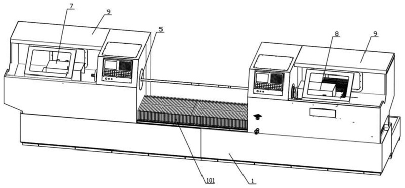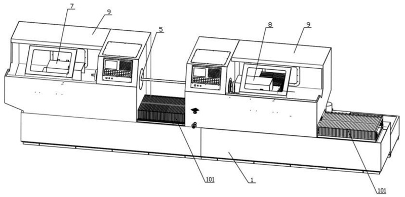 圖1是本實用新型碳化硅管體雙頭打磨車床的結(jié)構(gòu)示意圖;