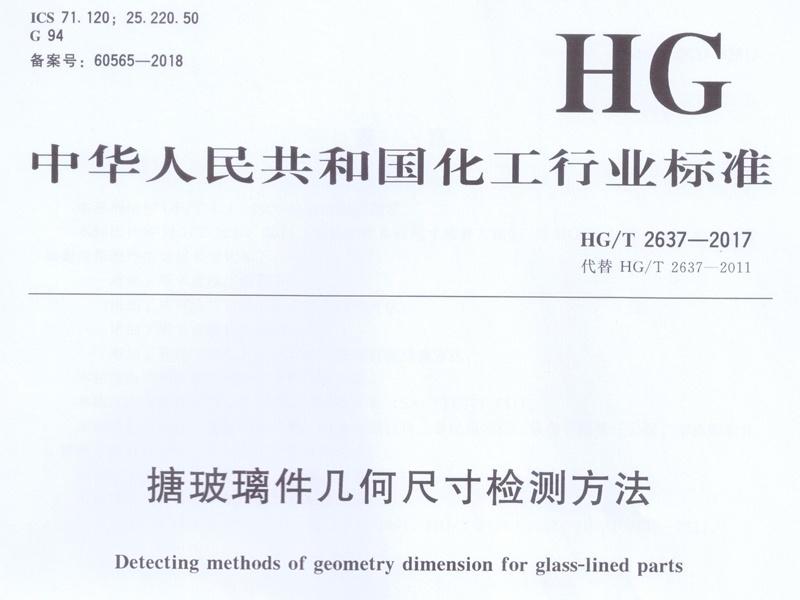 2021-02-28HG/T 2637-2017 搪玻璃件幾何尺寸檢測方法 1、范圍:本標(biāo)準(zhǔn)規(guī)定了排玻璃件形位公差的檢測方法。本標(biāo)準(zhǔn)適用于GB 25025 規(guī)定的塘玻璃件形位公差的檢測。2、規(guī)范性引用文件:下列文件對于本文件的應(yīng)用是必不可少的。凡是注日期的引用文件,僅注日期的版本適用于本文件。凡是不注日期的引用文件,其最新版本(包括所有的修改單)適用...