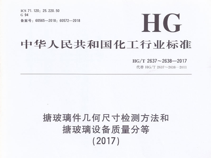 無錫錢橋化工機械有限公司參與起草中華人民共和國化工行業(yè)標準HG/T 2637~2638-2017《搪玻璃件幾何尺寸檢測方法和搪玻璃設(shè)備質(zhì)量分等》。 ...