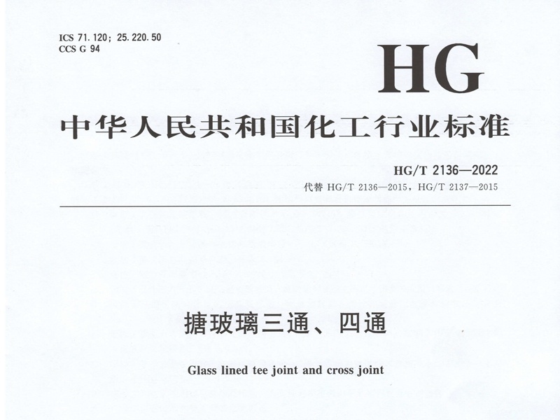 HG/T 2136-2022搪玻璃三通化工行業(yè)標準簡介和下載
