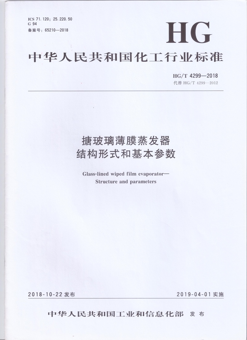 搪玻璃薄膜蒸發(fā)器 HG / T 4299 - WFE 5